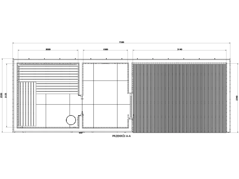 Taras doskonale sprawdzi się jako miejsce odpoczynku po saunowaniu – idealne na leżaki, strefę relaksu lub niewielką balię ogrodową, pozwalając w pełni wykorzystać potencjał przestrzeni wokół sauny.