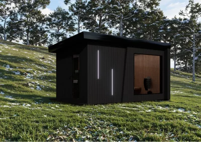 Caldori Therma Imperia SP to luksusowa odsłona flagowego modelu Therma Imperia, zaprojektowana z myślą o użytkownikach, którzy oczekują pełnego komfortu i funkcjonalności na najwyższym poziomie. Połączenie przestronnej sauny oraz zintegrowanej strefy prysznicowej z umywalką tworzy spójną, nowoczesną przestrzeń wellness, idealną do prywatnych ogrodów rezydencjonalnych oraz ekskluzywnych stref SPA.