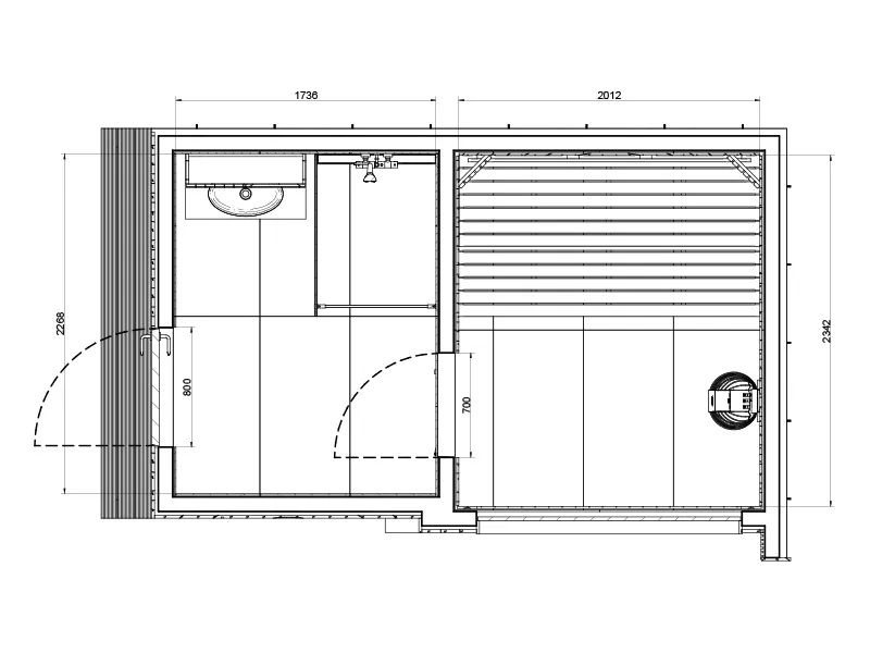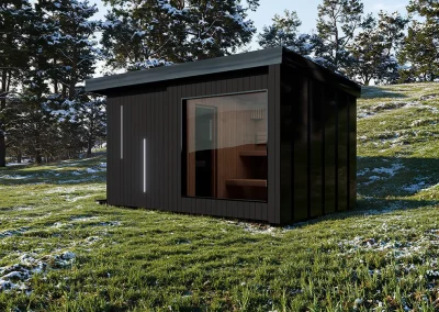 Sauna dostarczana jest w całości zmontowana, w pełni przygotowana do ustawienia w miejscu docelowym. Obiekt posiada wyprowadzony kabel zasilający, a w przypadku zamówień bez pieca wykonana jest rozprowadzona instalacja elektryczna pod jego późniejszy montaż.