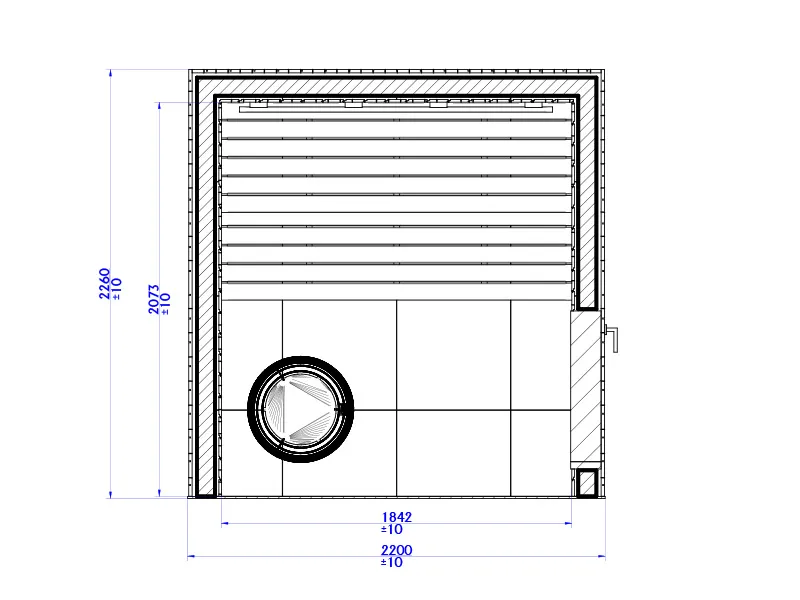Podłoga wykonana na stalowej ramie, ocieplona płytą XPS, zapewnia wysoką stabilność i energooszczędność. Ściany i dach z drewna konstrukcyjnego C24 oraz izolacja z wełny skalnej gwarantują szybkie nagrzewanie i utrzymanie temperatury.